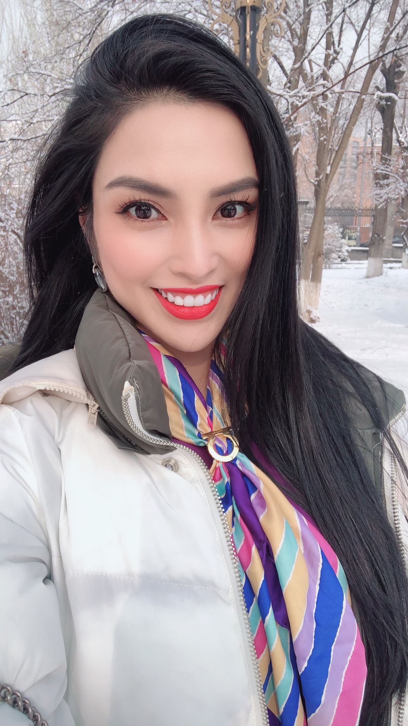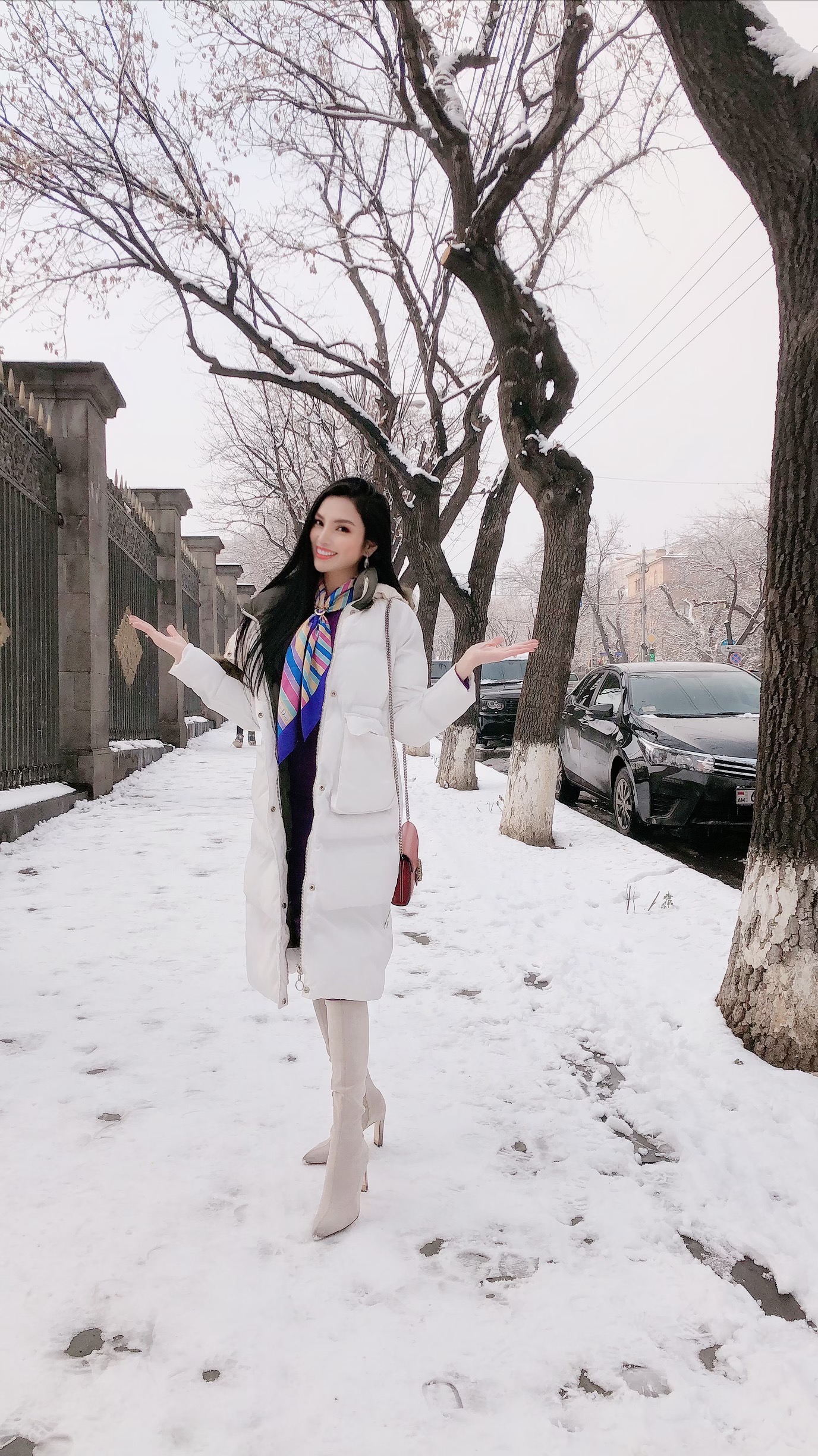 Đây là lần thứ 3 cô đặt chân đến Nga nhưng lại là lần đầu tiên thưởng ngoạn khung cảnh tuyết rơi tại đây.