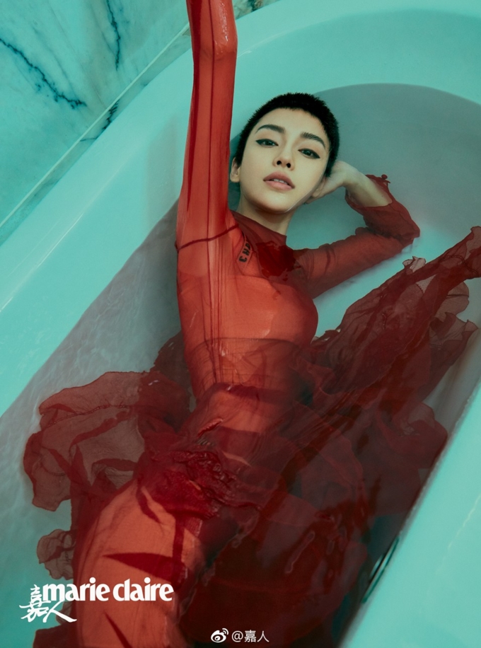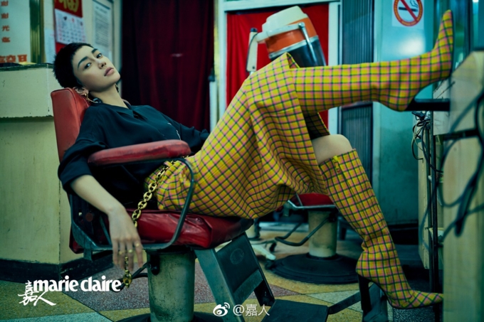 Bà xã của Huỳnh Hiểu Minh vô cùng lạ lẫm với hình tượng tóc ngắn, khuôn mặt trang điểm cá tính, khác xa so với hình tượng nhẹ nhàng với mái tóc dài. Được biết, bộ ảnh được thực hiện bởi nhiếp ảnh gia nổi tiếng Phùng Chí Khải.