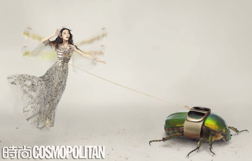 Nhờ ngoại hình lai Tây, nữ diễn viên được nhiều nhãn hàng mời làm người đại diện sản phẩm. Cô thường xuyên được các tạp chí danh tiếng chọn làm gương mặt trang bìa. Mới đây cô nàng còn xuất hiện trên bìa tạp chí COSMOPOTIAN khi hoá thân một cách xuất sắc vào hình tượng cô tiên tí hon Tinker Bell. Đây cũng không phải là lần đầu tiên nữ diễn viên ”mê hoặc” dân tình với nhan sắc của mình trên bìa tạp chí nhưng với bộ ảnh này, Angela Baby đang là từ khoá được nhắc đến nhiều nhất mạng xã hội Weibo.