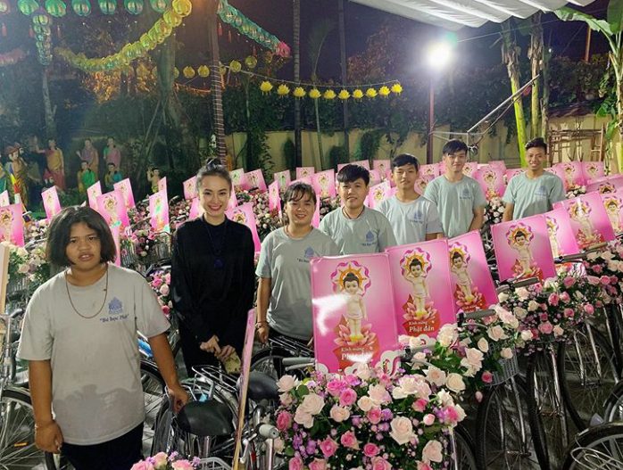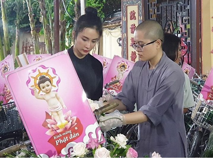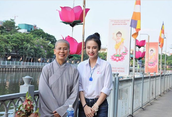 Mới đây nhất trong ngày đại lễ Phật Đản, Angela Phương Trinh khiến cộng đồng mạng xuýt xoa với vẻ đẹp trong trẻo, tinh khôi. Trong bộ đồ lam mộc mạc, Trinh cùng sư cô và những người bạn tham gia các hoạt động diễu hành mừng ngày lễ lớn này.