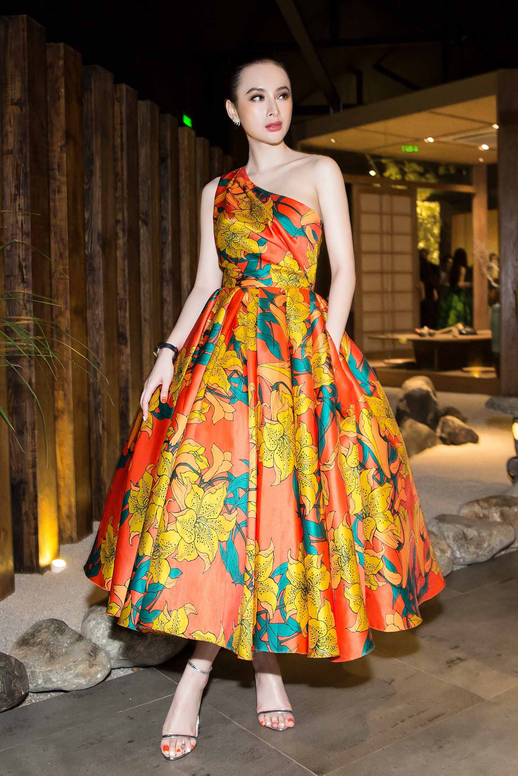 Tối 3/6, Angela Phương Trinh gây ấn tượng khi xuất hiện tại buổi khai trương của một nhà hàng tại TP.HCM.