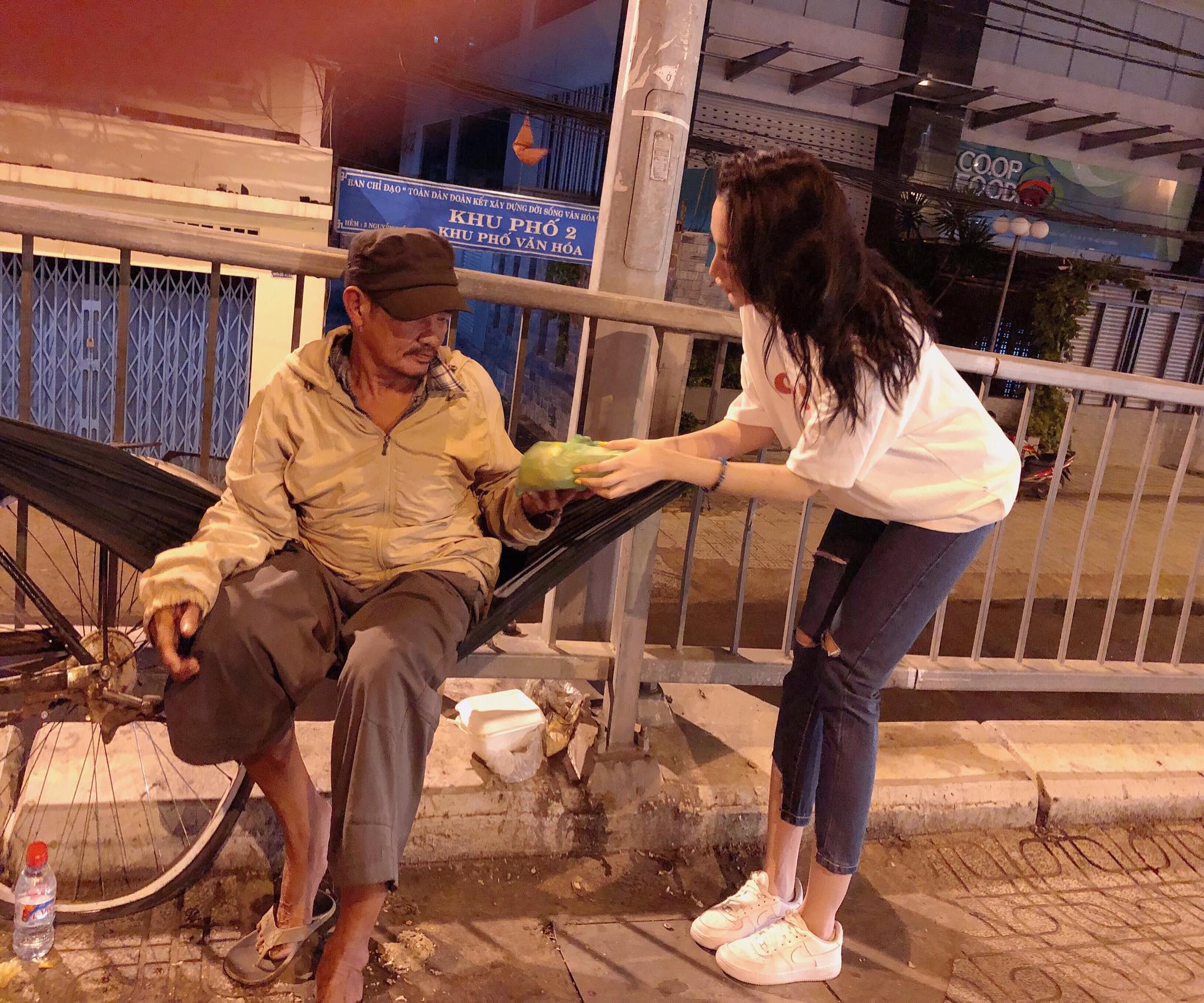 Tối 21/1, Angela Phương Trinh cùng người hâm mộ có buổi từ thiện ý nghĩa tại khu vực trung tâm TP.HCM. Như hoạt động thường lệ, nữ diễn viên xinh đẹp đi phát cơm cho những lao động nghèo, người lang thang và người già neo đơn dọc các con phố ở Sài thành.