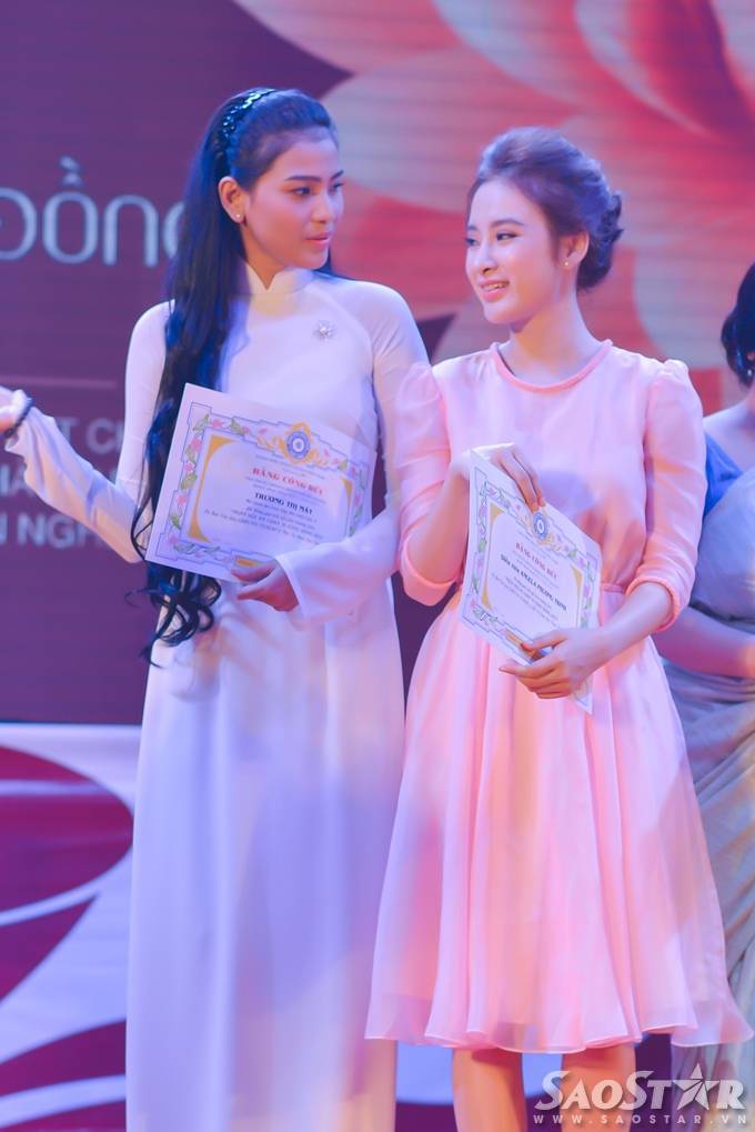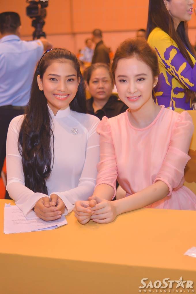 Angela Phương Trinh vui vẻ chụp ảnh lưu niệm cùng á hậu Trương Thị May.