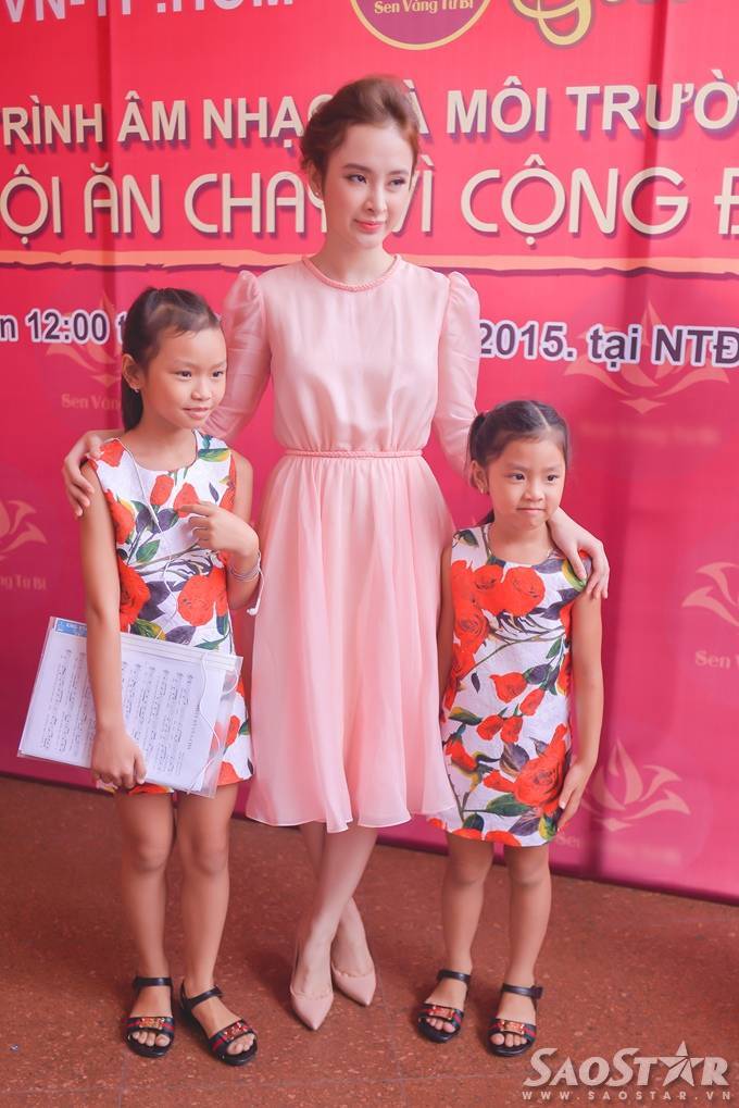Sáng 13/9, Angela Phương Trinh có buổi tham dự sự kiện Ngày hội ăn chay vì cộng đồng 2015 tại Nhà thi đấu Nguyễn Du (TP HCM). Trong phần đấu giá các vật phẩm để gây quỹ giúp đỡ, xây nhà tình thương cho các hoàn cảnh khó khăn, nữ diễn viên 9x luôn nhiệt tình tham gia.