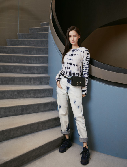 Gần đây, cô nàng lần nữa tiến vào tầm nhìn của cư dân mạng khi xuất hiện trong một loạt hình ảnh ghi hình quảng cáo. Trong ảnh có thể thấy Angelababy đang đứng trên lầu thang, nhất cử nhất động nhẹ ngàng của cô nàng đã làm đắm say bao nhiêu trái tim của người xem. Cách kết hợp áo sweater có họa tiết cá tính cùng với quần jeans màu trắng thoải mái và thắt lưng của cô nàng đã dễ dàng khoe đôi chân dài và eo thon; được biết, tạo hình ngày hôm đó của cô nàng từ đầu đến chân đều đến từ thương hiệu Dior do chính cô làm người đại diện.