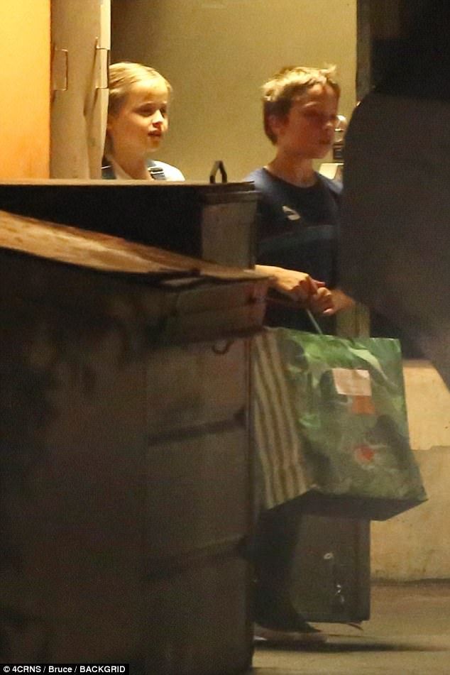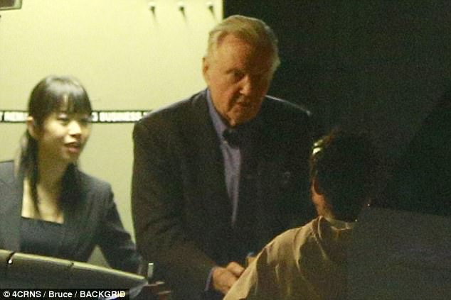 Ông Jon Voight gặp các cháu trước lối vào nhà hàng.