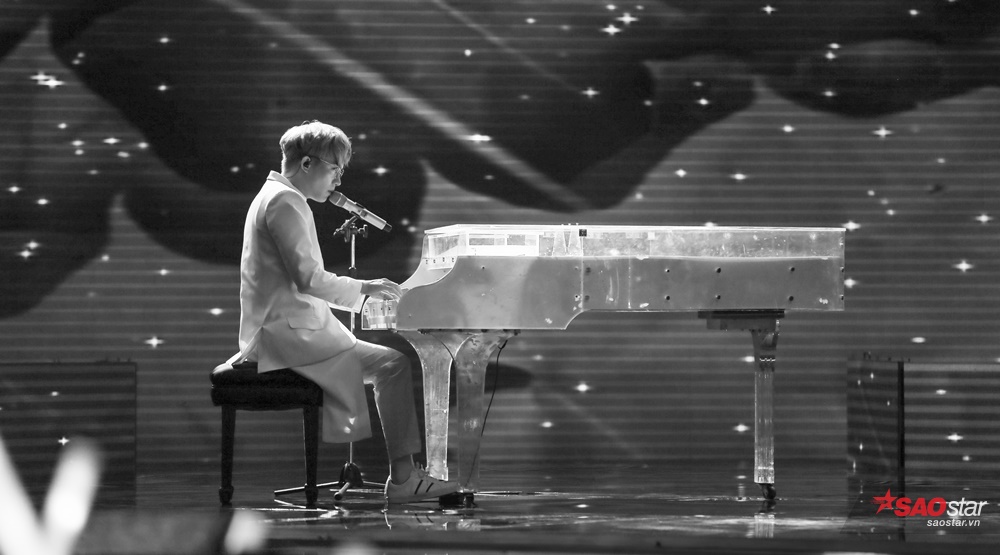 Một Anh Tú lãng tử, nhẹ nhàng và đầy cảm xúc khi thể hiện ca khúc Ánh nắng của anh bên cạnh piano.
