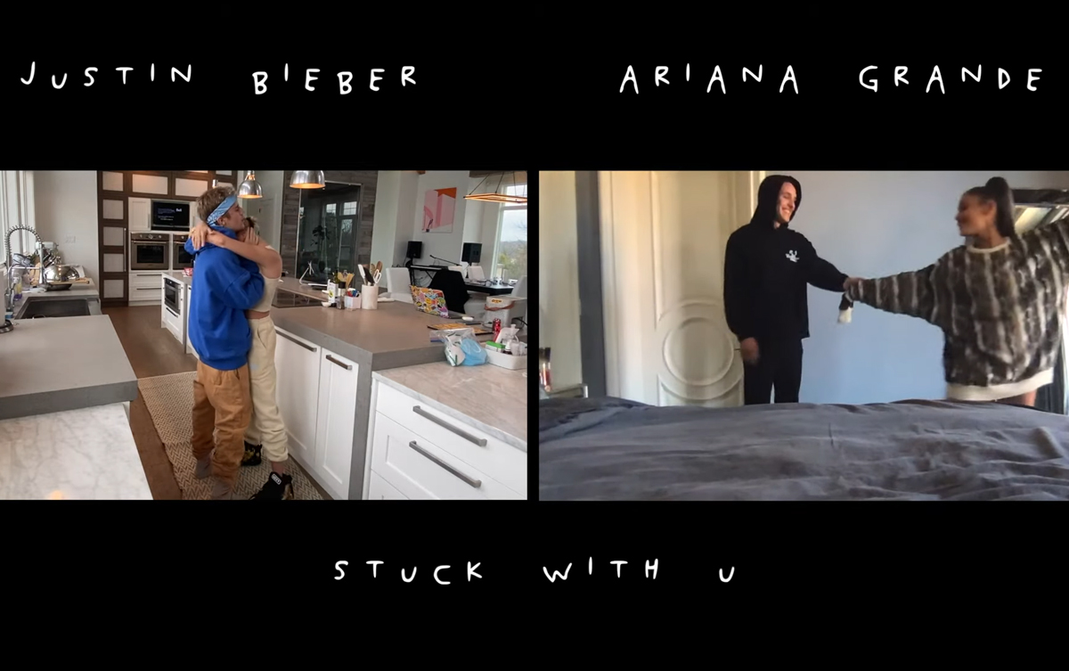 Ngày 8/5, Ariana Grande đã chính thức phát hành video âm nhạc cho ca khúc hợp tác với nam ca sĩ nổi tiếng Justin Bieber mang tên Stuck with U. Sản phẩm hợp tác này rất được khán giả mong đợi và đúng như dự đoán, MV của nó được lấy theo chủ đề cách ly trong mùa dịch COVID-19. Đặc biệt hơn, nữ ca sĩ còn tiết lộ danh tính bạn trai của mình trong video âm nhạc mới ra mắt này.