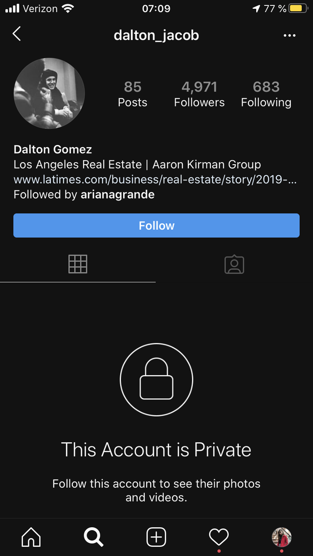 Dalton Gomez nhanh chóng đổi tài khoản Instagram thành riêng tư sau khi lộ chuyện hẹn hò trước đây.