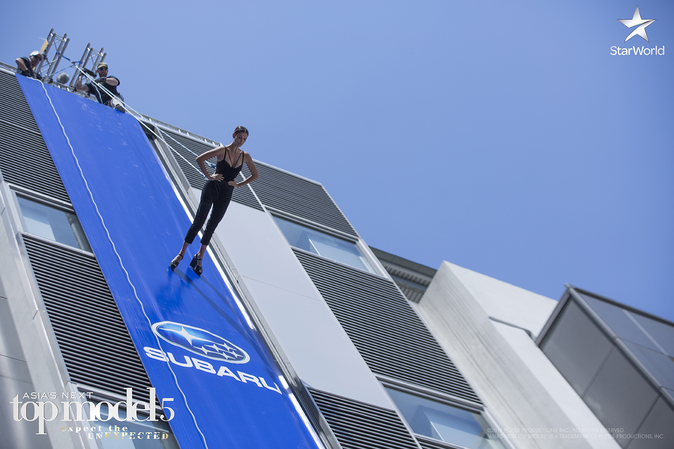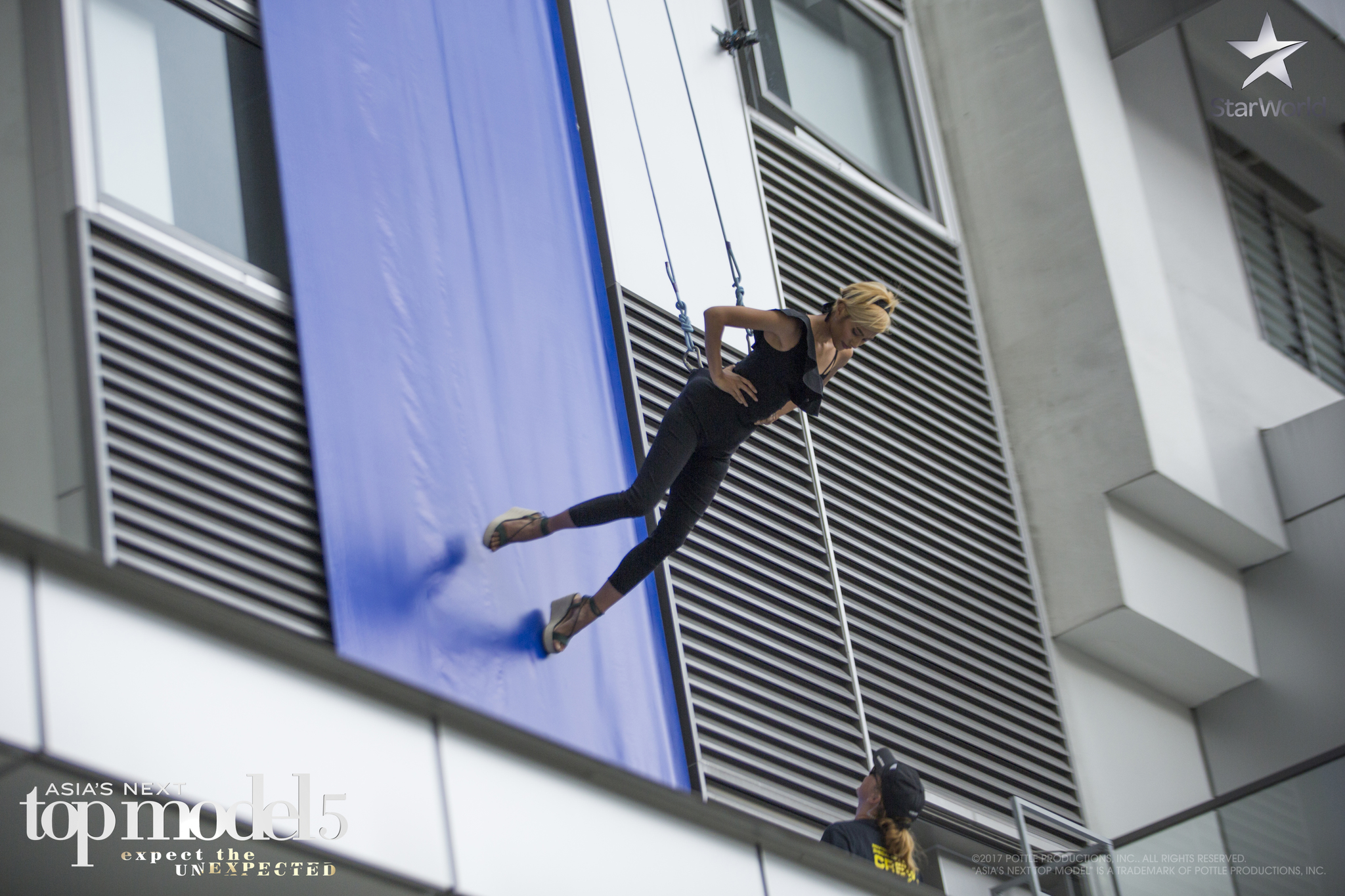Phần thi đầu tiên của tuần là thử thách catwalk dọc theo mặt tường của một toà nhà 6 tầng. Thử thách với độ khó khủng khiếp này khiến các cô gái “mắt chữ A, miệng chữ O”. Căn bệnh hở van tim bẩm sinh khiến Minh Tú khá lo lắng trước thử thách này.