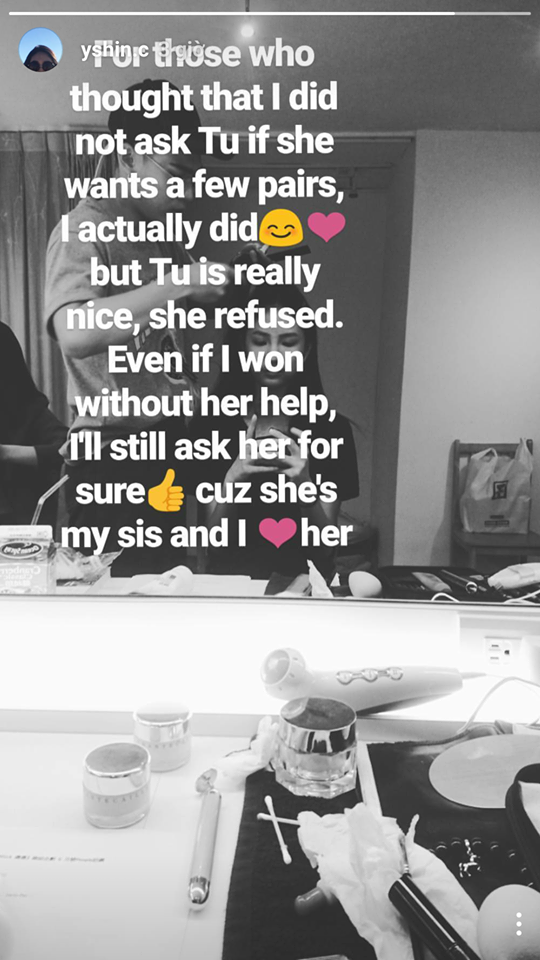 Trước những bình luận tiêu cực, Cindy đã “đăng đàn” trên Instagram cá nhân giải thích:“Gửi những ai nghĩ rằng tôi đã không tặng Tú một vài đôi giày. Tôi thật sự đã tặng cô ấy. Nhưng Tú thật sự rất tử tế, cô ấy đã từ chối…”.