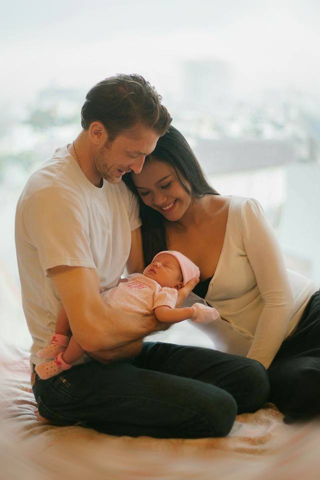 Khoảnh khắc bình yên của hai vợ chồng và con trai đầu lòng.