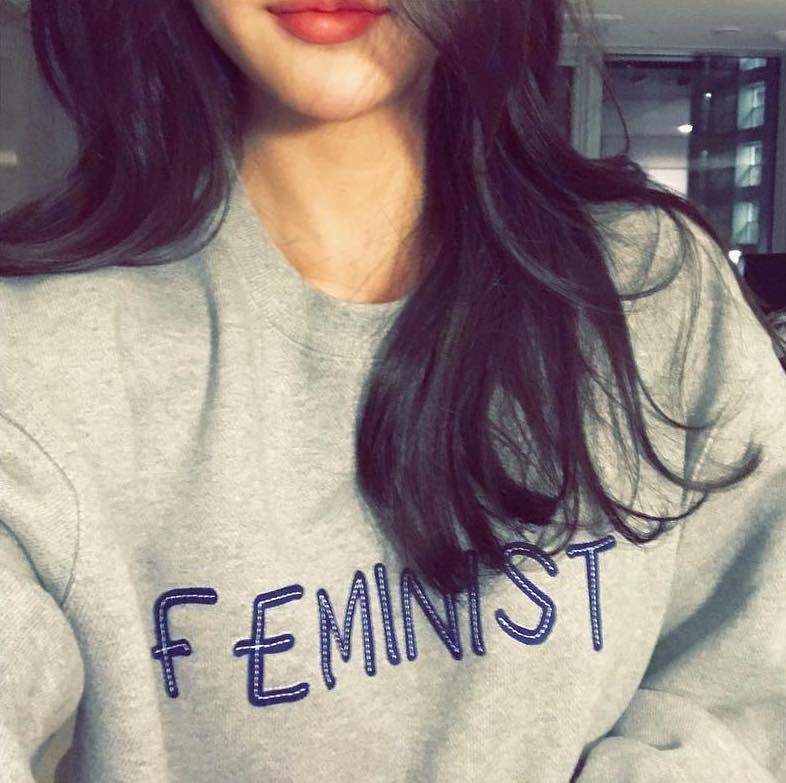 Han Seo Hee nhiều lần đăng ảnh mặc áo có chữ “Feminist” để chứng minh bản thân ủng hộ nữ quyền.