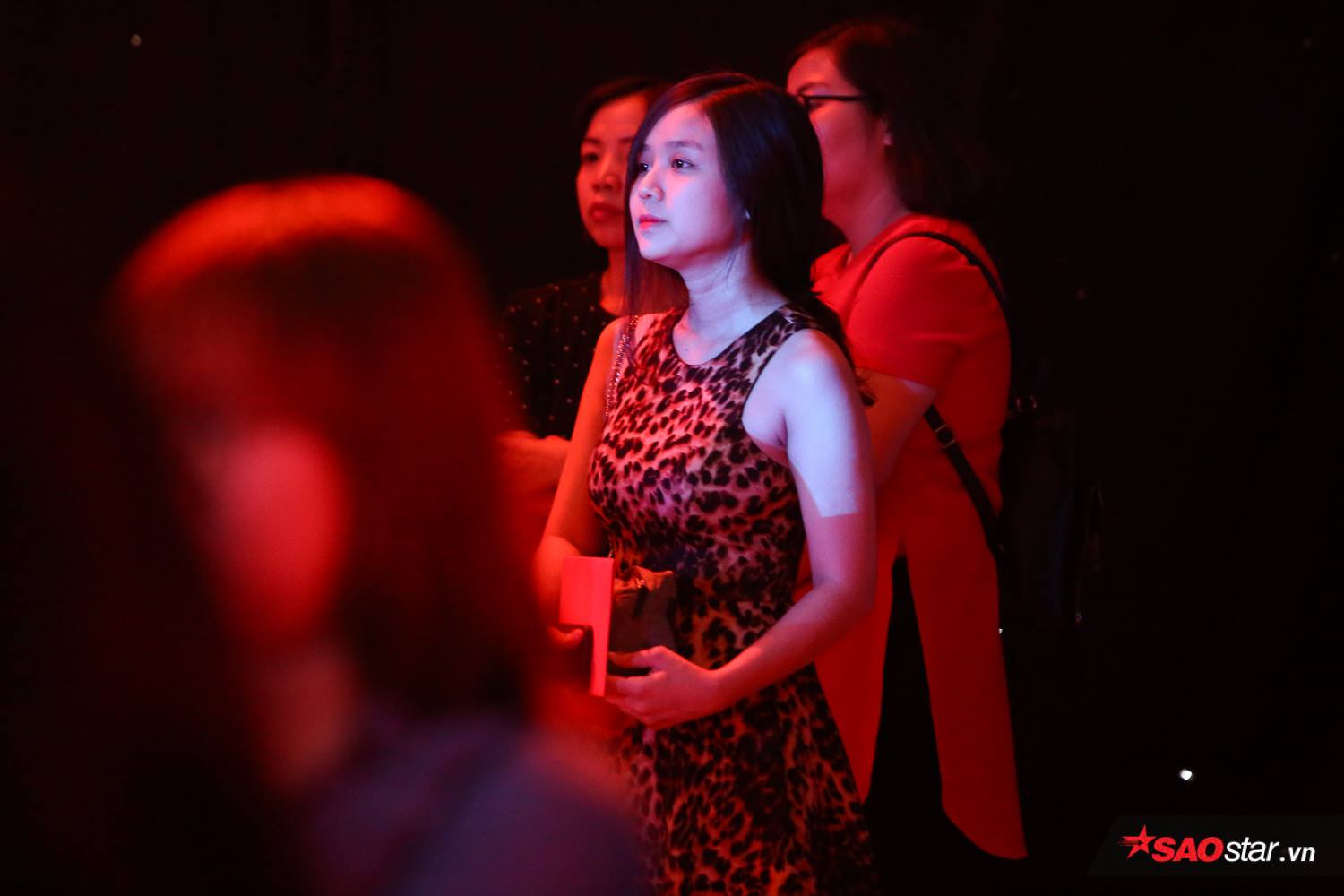 Nép dưới hàng ghế khán giả, bạn gái Hoàng Ngọc chăm chú theo dõi phần biểu diễn của người yêu.