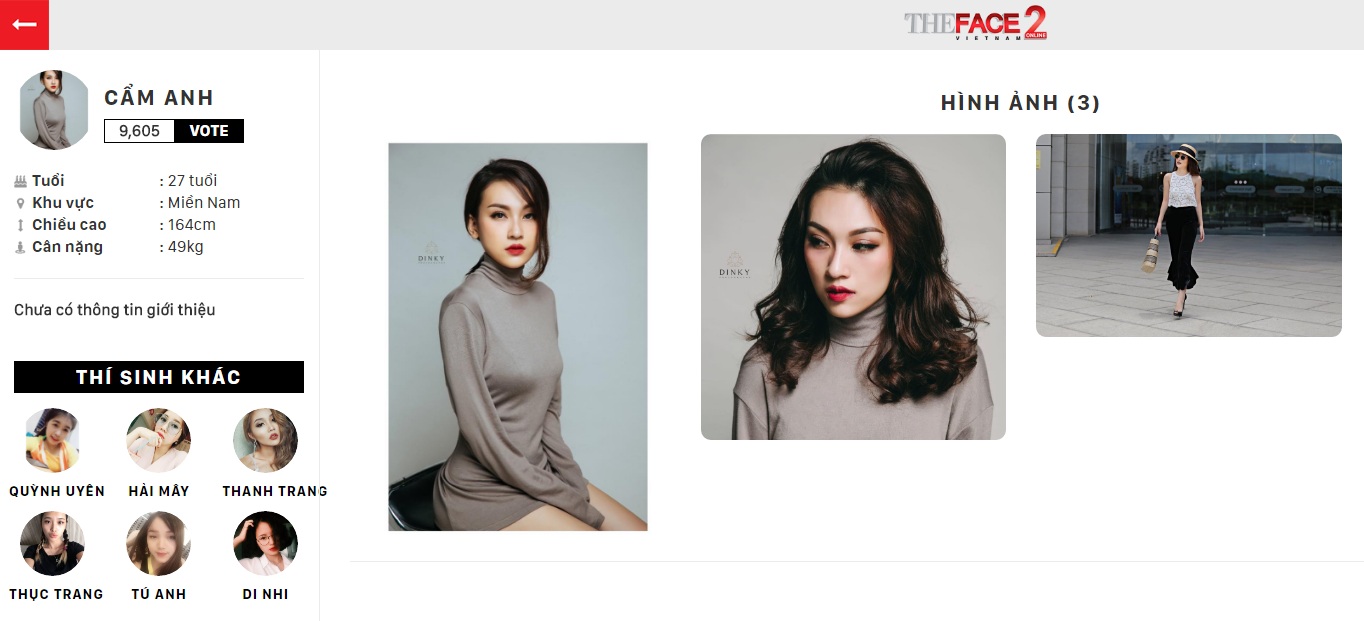 Với vẻ đẹp ấn tượng này, giúp Cẩm Anh có được ấn tượng nhất định trong dàn thí sinh đẹp đều của The Face online.