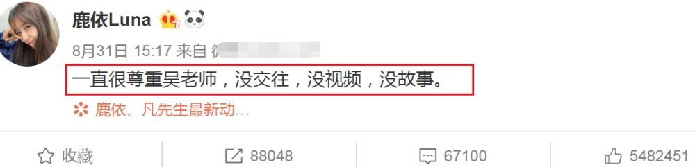 Tin đồn hẹn hò giữa Ngô Diệc Phàm và Lộc Y (tên thật Tần Ngưu Chính Uy) vào đầu tháng 9 đang dần lắng xuống kể từ khi cô nàng đăng bài: “Luôn tôn trọng Ngô lão sư, không qua lại, không có video…“. Nhưng trong cả quá trình của câu chuyện này thì người trong cuộc như Ngô Diệc Phàm từ đầu đến cuối không hề có bất kỳ câu trả lời nào.