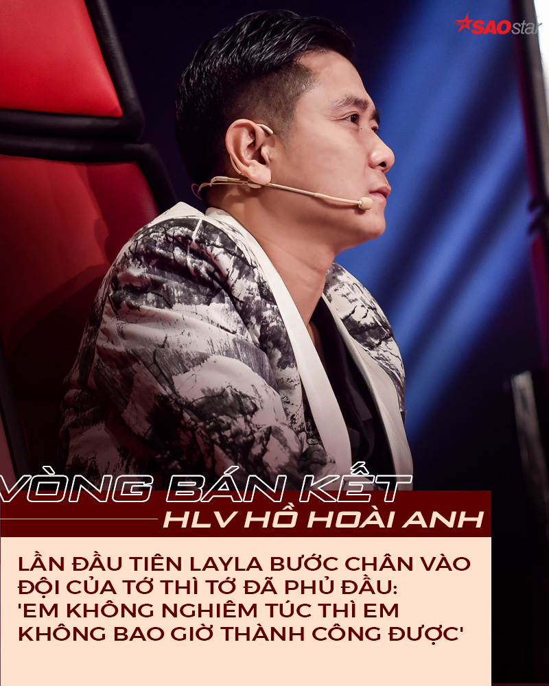 Để động viên học trò, HLV Hồ Hoài Anh đã lên tiếng: “Lần đầu tiên Layla bước chân vào đội của tớ, tớ đã phủ đầu luôn: Em không nghiêm túc thì em không bao giờ thành công được”. Câu nói như một lời phân trần cho lý do vì sao Layla đã làm rất tốt nhưng vẫn cảm thấy áp lực. Layla đã xoay chuyển áp lực trở thành động lực để có được một màn trình diễn xuất sắc tại Bán kết.