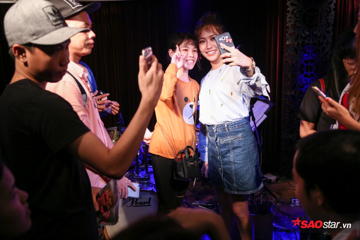 Cuối chương trình, Diệu Nhi vui vẻ đứng nán lại để chụp ảnh cùng mọi người.