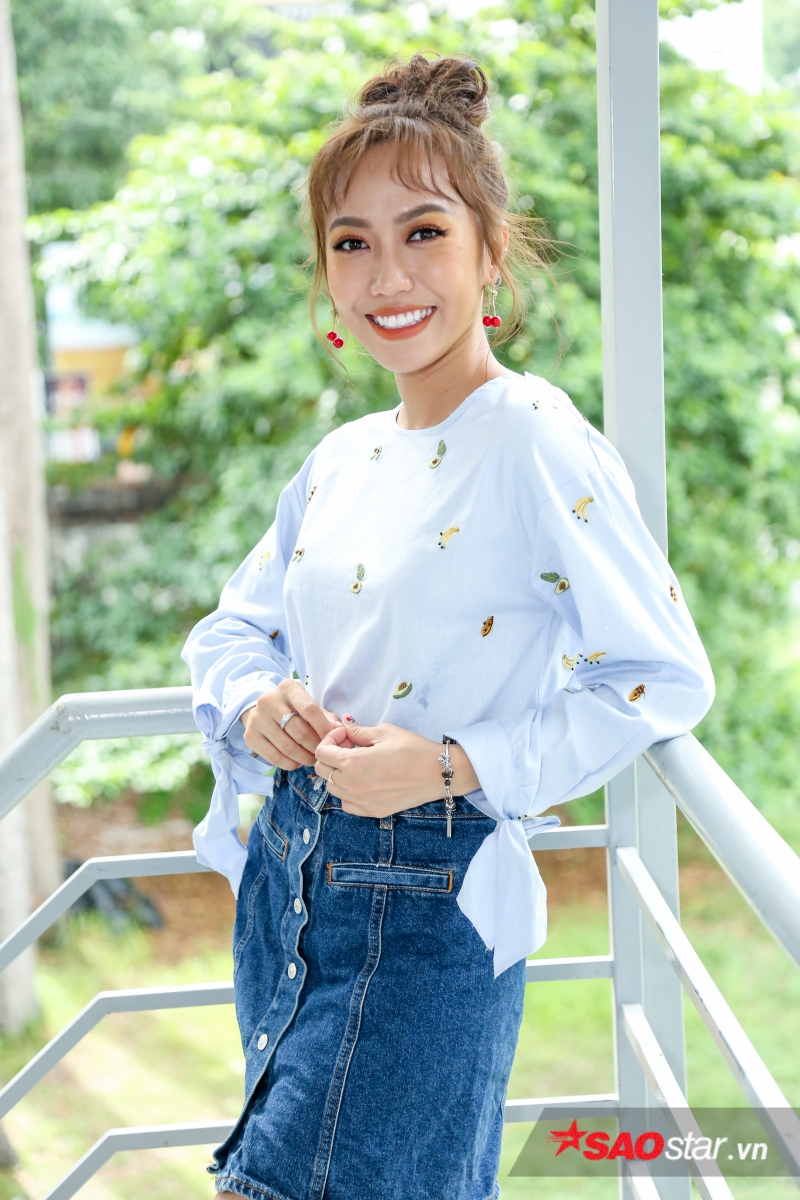 Diệu Nhi diện váy jean ngắn trẻ trung, năng động, chuẩn bị tinh thần tham gia buổi offline mừng sinh nhật của mình.