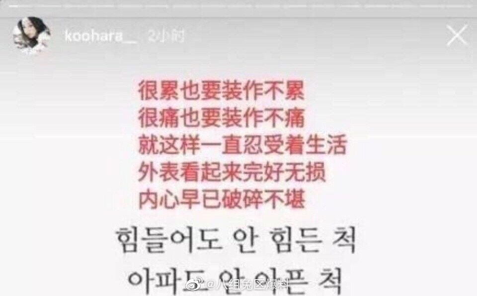 Bài viết của Goo Hara thể hiện sự tuyệt vọng: Rất mệt cũng phải giả vờ không mệt. Rất đau khổ cũng phải giả vờ không sao, cứ như thế mà gánh chịu sống tiếp. Bên ngoài nhìn thì thấy rất tốt không có gì nhưng nội tâm sơm đã sụp đổ hoàn toàn rồi.