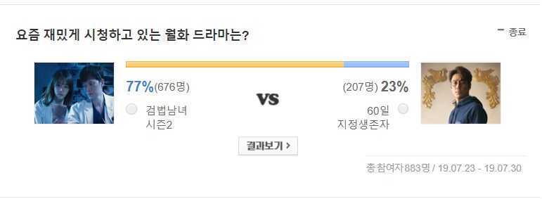 “Dạo gần đây, bạn thấy bộ phim truyền hình nào hay để xem?”. Kết quả, 'Bộ đôi điều tra 2' mang về 77%, trong khi “Designated Survivor: 60 Days” chỉ có 23%.