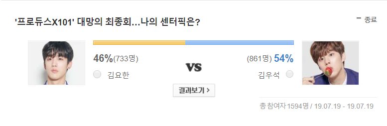 Theo kết quả bỏ phiếu trực tiếp trong ngày, Kim Woo Seok được khán giả Hàn bình chọn nhiều hơn với 861 người (54%). Tuy nhiên, kết quả do Mnet công bố, Kim Yo Han đã trở thành center trong đêm trung kết. Ngay sau đó, một số thông báo nói về việc Mnet thao túng kết hạng khi khoảng cách giữa các phiếu bầu giống nhau. Lúc bấy giờ, dư luận xôn xao và cho rằng Kim Woo Seok mới là center thật sự.
