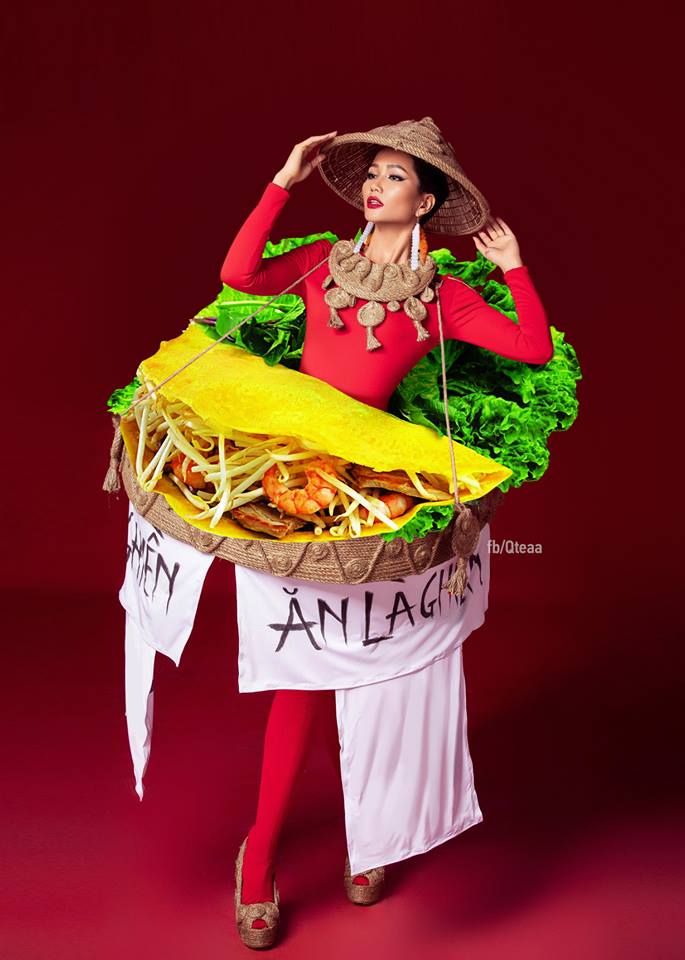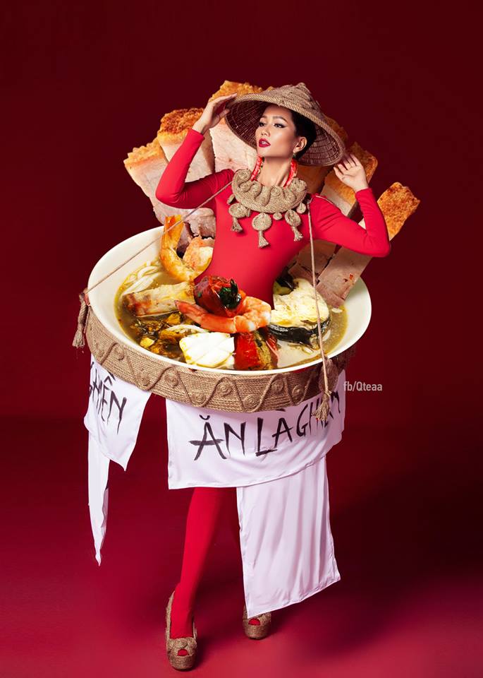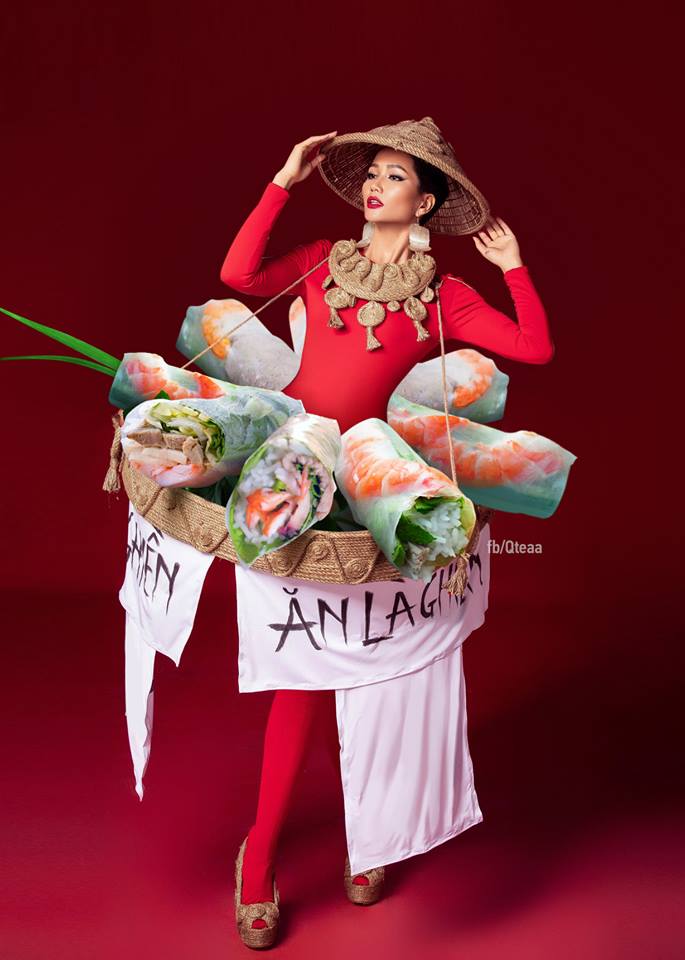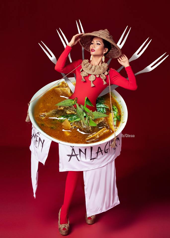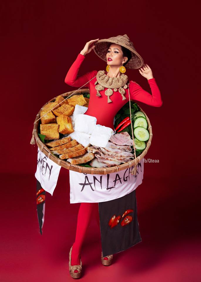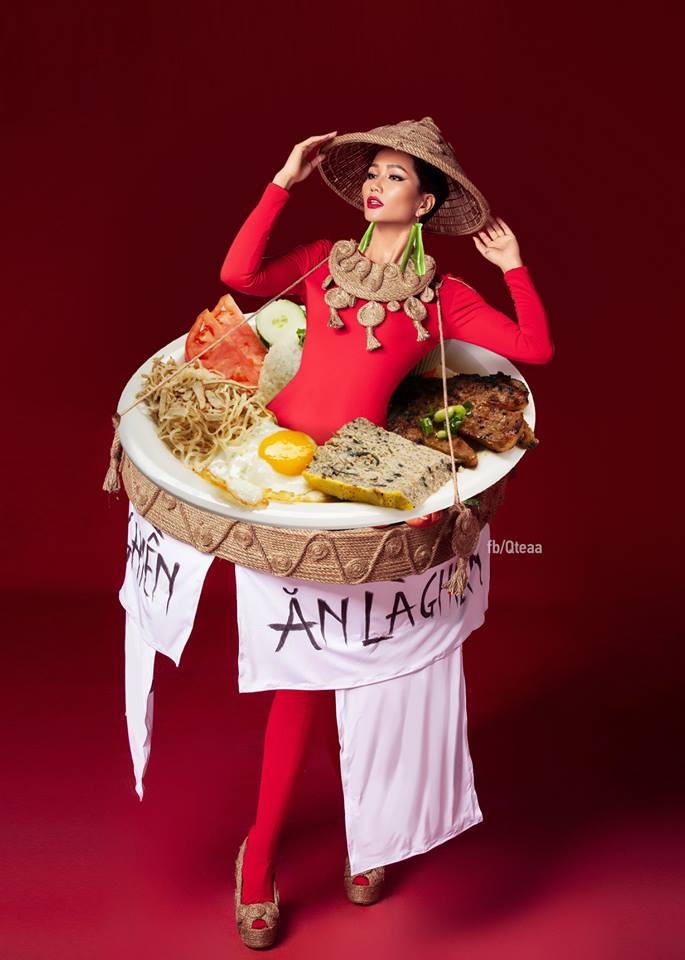 Nếu không vì lý do màu sắc mà là về sở thích hương vị, cư dân mạng cũng có ngay hàng loạt thiết kế ấn tượng cho H'Hen Niê vừa đảm bảo thể hiện nét đẹp văn hóa ẩm thực Việt Nam vừa khiến khán giả, giám khảo “ồ à” thích thú vì… thèm ăn như cơm tấm,
