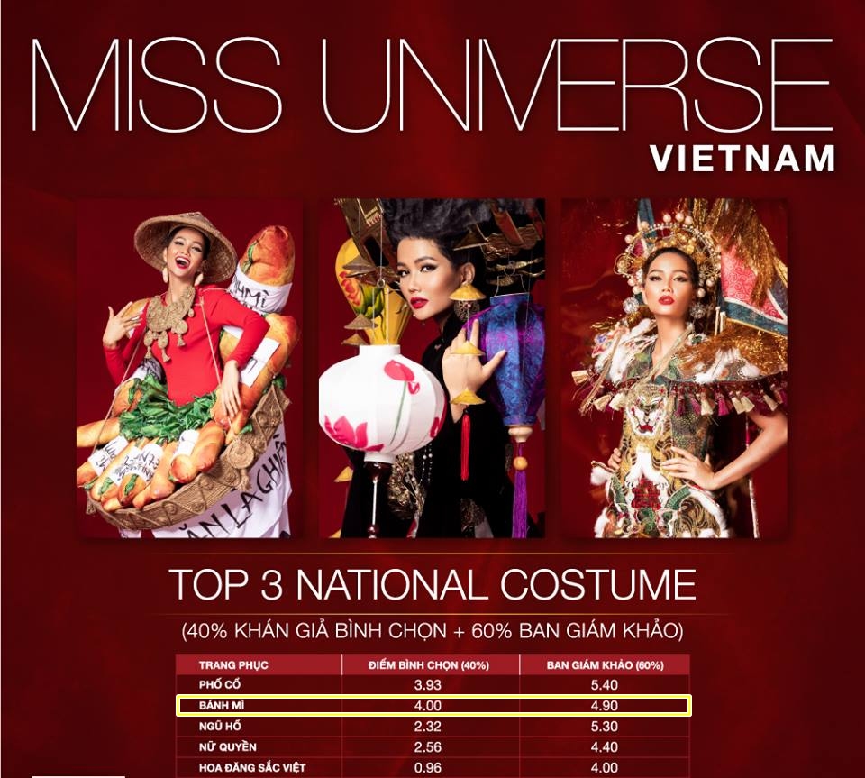 Điều bất ngờ nhất chính là thiết kế “Bánh mì” vốn được lòng người hâm mộ nhất lại không giành được điểm số cao nhất. Với ý tưởng độc đáo về ẩm thực, cư dân mạng “có tâm” đã hiến kế thêm nhiều lựa chọn cho concept trang phục truyền thống với những hương vị món ngon vùng miền đặc trưng hấp dẫn hơn cả “Bánh mì”.