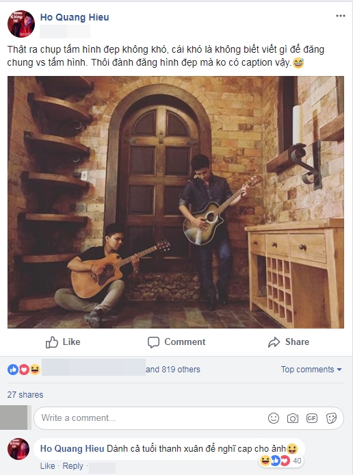 Không để người hâm mộ đợi lâu, vừa qua, nam ca sĩ Con bướm xuân đã cập nhật hình ảnh mới nhất. Anh không đăng tải bất cứ phát ngôn nào về tin đồn tình cảm của người yêu cũ. Thay vào đó, Hồ Quang Hiếu đơn thuần chia sẻ một bức ảnh đẹp và viết: “Thật ra chụp tấm hình đẹp không khó, cái khó là không biết viết gì để đăng chung với tấm hình. Dành cả tuổi thanh xuân để nghĩ chú thích cho ảnh”.