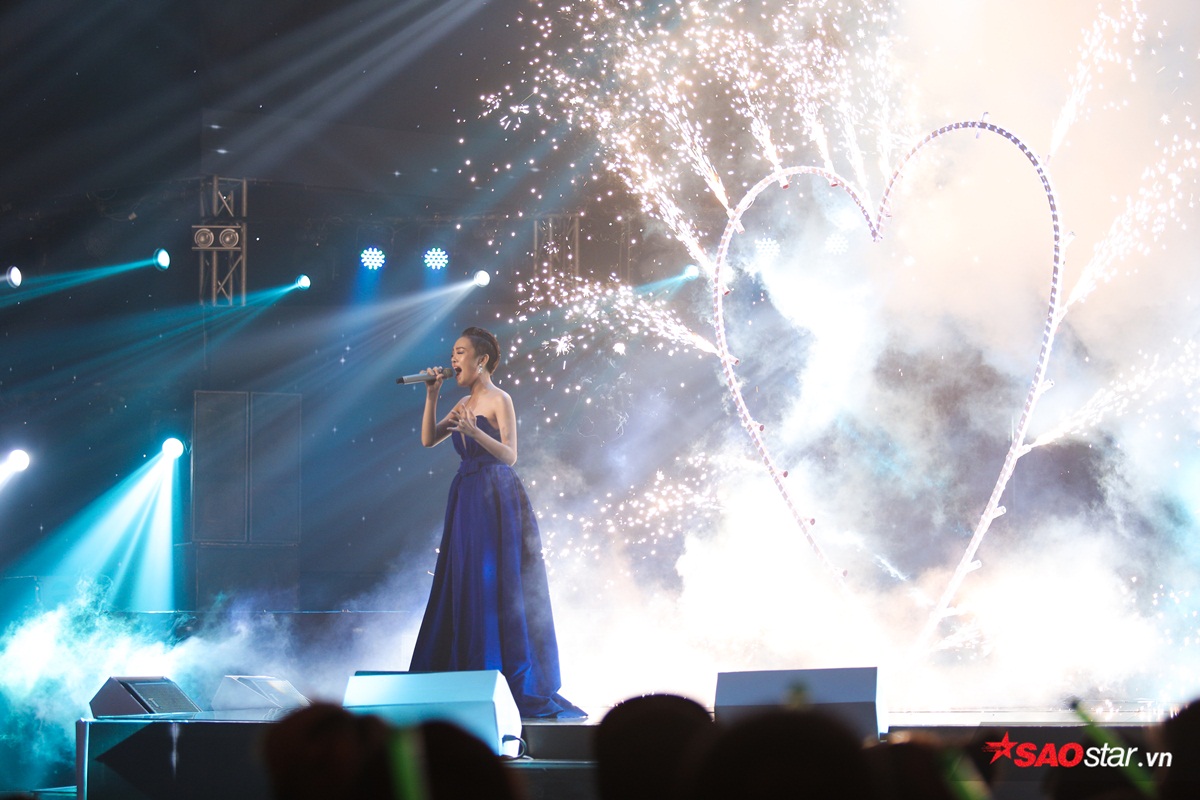 Bài hát được đo ni đóng giày cho giọng ca học trò Tóc Tiên có cả những quãng khoe giọng, nốt phiêu cao đầy nội lực. Khi Thái Bình “bắn” nốt cao nhất trong tiết mục, trái tim đạo cụ khổng lồ sau lưng cô nàng bất ngờ bắn những tia lửa phát sáng vô cùng đẹp mắt. Đây chính là cách bộ đôi Tóc Tiên - Thái Bình thuyết phục khán giả với một ca khúc hoàn toàn mới nhưng vẫn dễ dàng đẩy cảm xúc của người nghe thăng hoa đến đỉnh điểm.