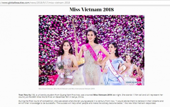 Chuyên trang sắc đẹp Global Beauties đã đăng tải bài báo về cuộc thi Hoa hậu Việt Nam. Không những thế, chuyên trang này còn dành nhiều lời khen cho nhan sắc của Tân Hoa hậu Việt Nam.