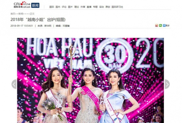 Không chỉ thế, trên các trang tin nổi tiếng ở Trung Quốc cũng đăng tải thông tin về cuộc thi như Tân Hoa Xã, QQ… Trên các diễn đàn lớn, cộng đồng mạng tại Trung Quốc cũng bàn tán sôi nổi về cuộc thi sắc đẹp tầm cỡ tại Việt Nam.