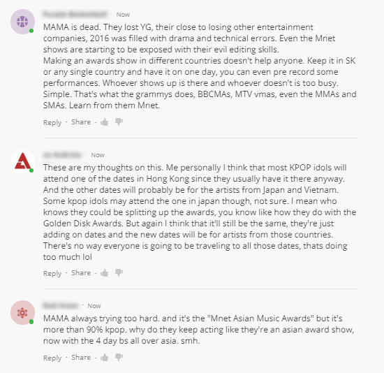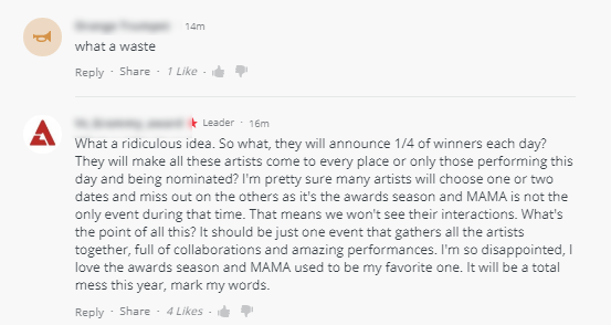 “MAMA luôn cố quá sức. Bản thân chương trình này đã hơn 90% là Kpop rồi, tại sao lại cố biến thành một chương trình giải thưởng châu Á”,