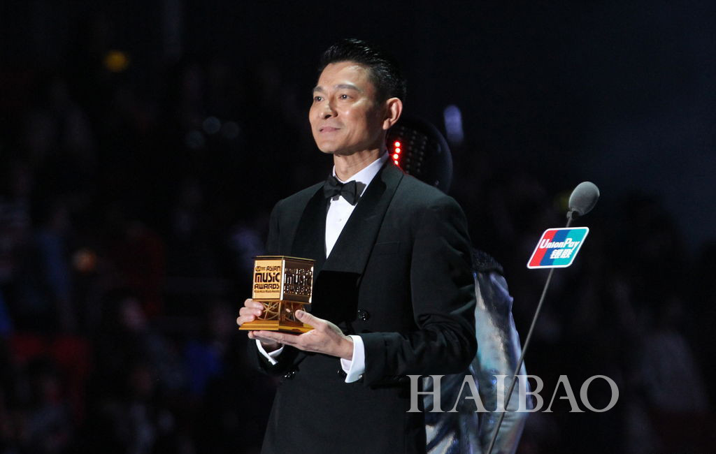 Lưu Đức Hoa trước phần trao giải cho EXO. Nam tài tử xứ Cảng thơm là nghệ sĩ khách mời tại MAMA 2014.