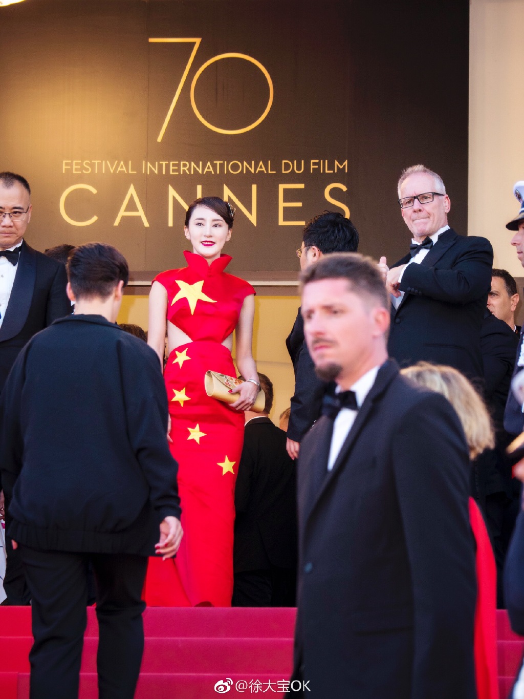 Tiêu biểu chính là hotgirl Từ Đại Bảo, cô nàng “cả gan” diện trang phục có in hình quốc kỳ tham dự sự kiện danh giá bật nhất thế giới. Điều này khiến cư dân mạng Hoa ngữ cảm thấy mất mặt và lên tiếng phản đối. Nhiều người cũng chỉ ra cô đã phạm luật Quốc kỳ của chính nước mình.
