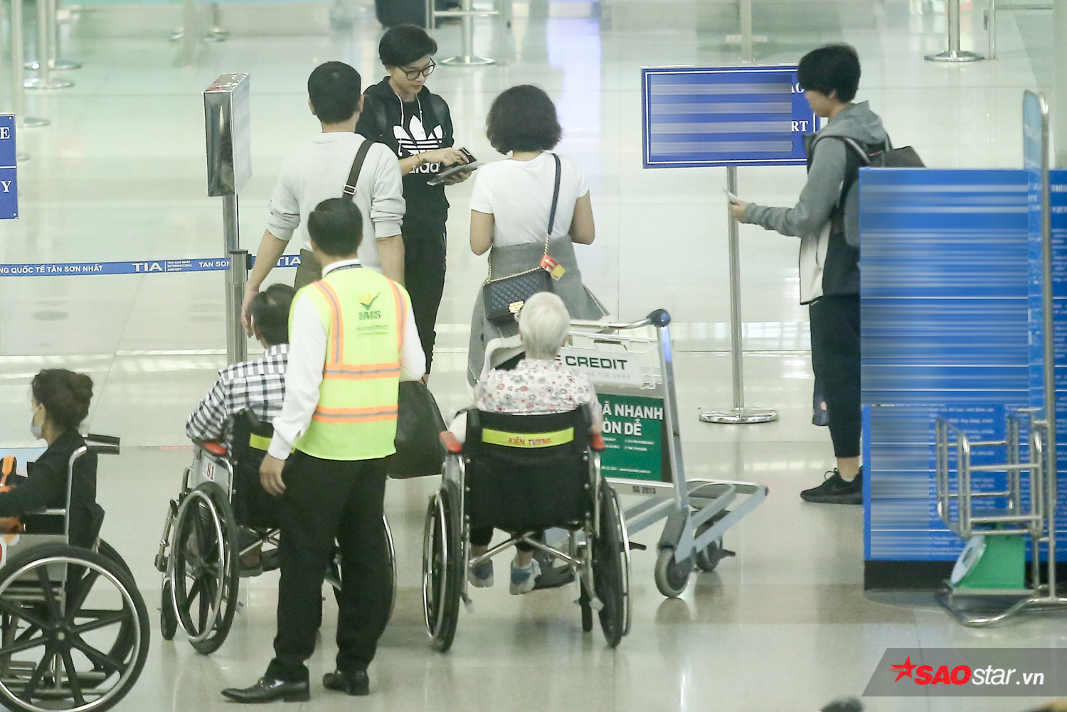 “Đả nữ” Ngô Thanh Vân (tóc ngắn, bên trái) cũng có mặt từ rất sớm để làm thủ tục và nhanh chóng di chuyển vào khu vực hải quan cùng một số người bạn.