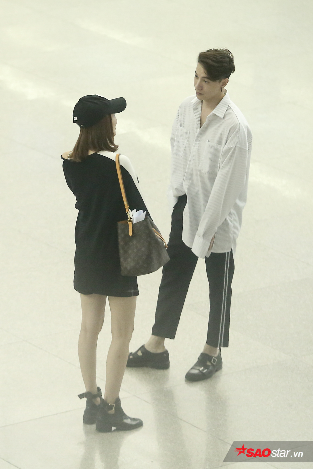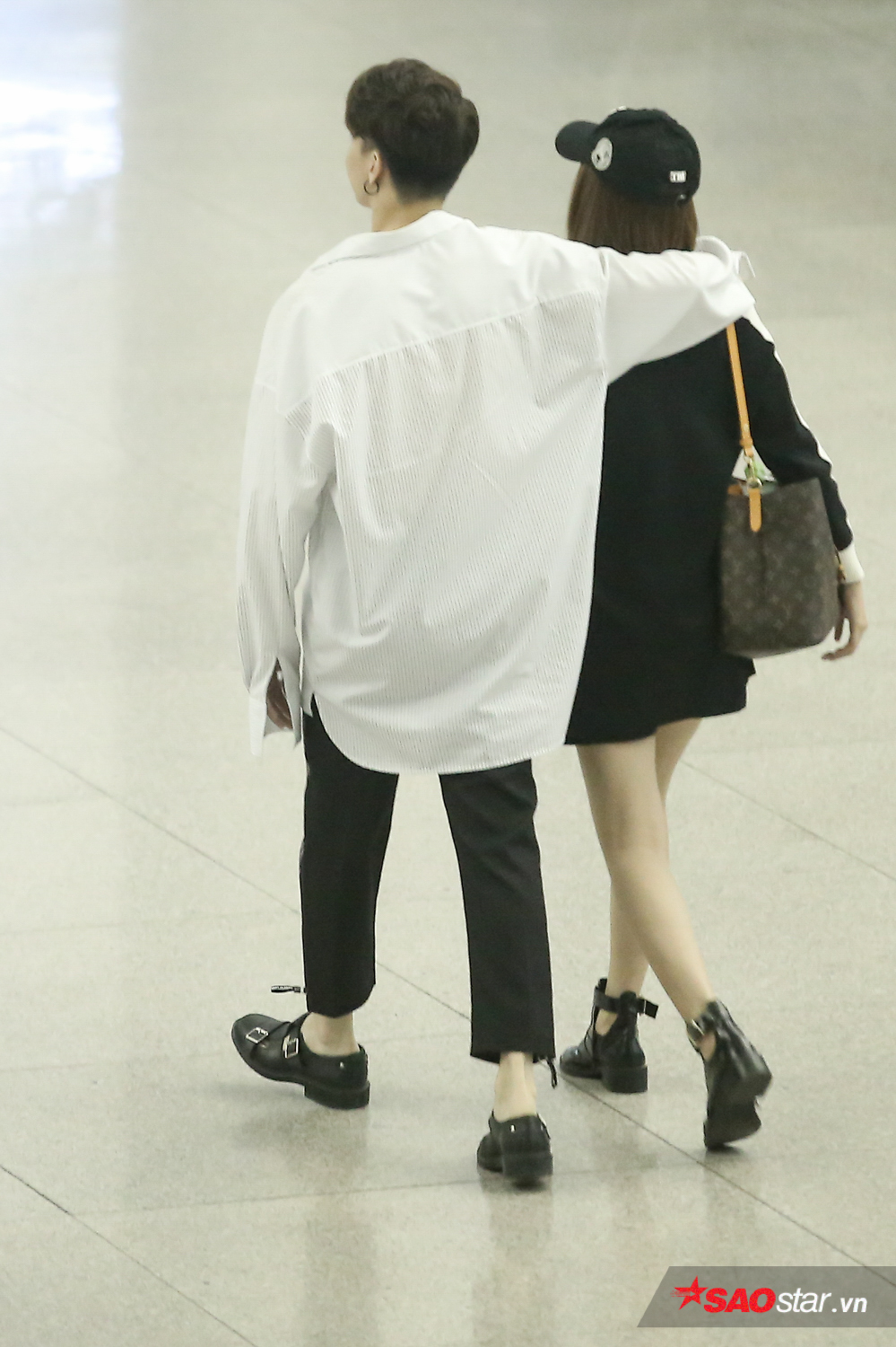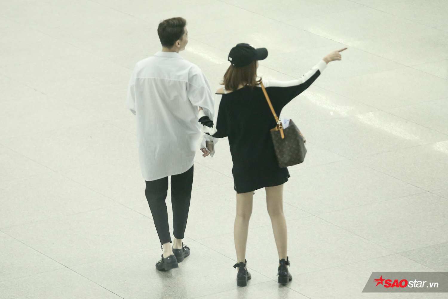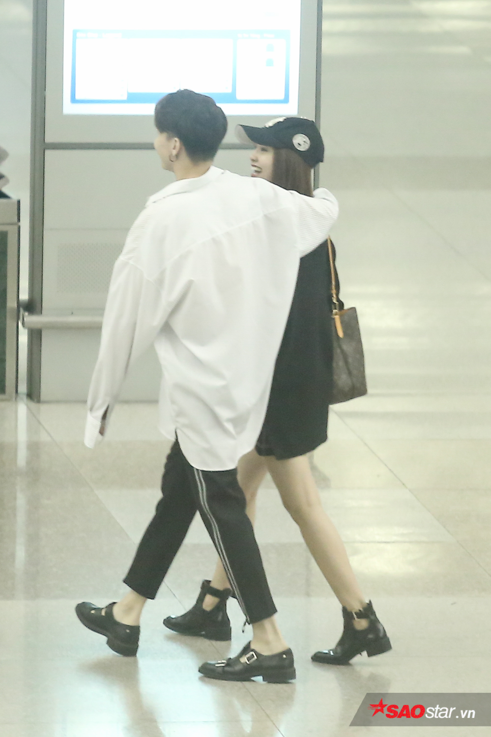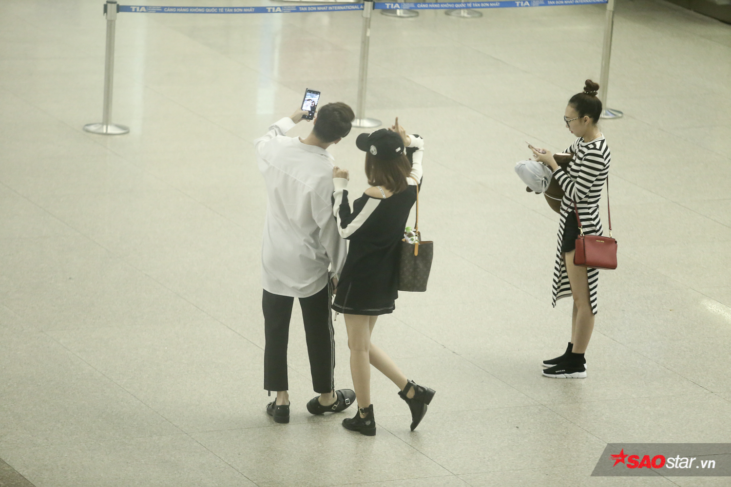 Sau khi chụp ảnh xong, S.T khoác vai Lan Ngọc đầy tình cảm và tiễn “bạn gái” đến khu vực hải quan để vào bên trong khu ngồi chờ máy bay.