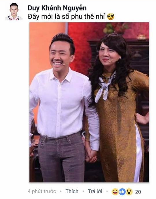 Và khi những tin đồn về Trấn Thành - Duy Khánh vẫn chưa chấm dứt thì mới đây, “cô giáo Khánh” tiếp tục “gây sốc” khi hồn nhiên thừa nhận mình và ông xã Hari Won có… “tướng phu thê”. Cụ thể, nam diễn viên sinh năm 1994 đăng tải hình ảnh cười rạng rỡ nắm chặt tay Trấn Thành với dòng chú thích: “Đây mới là số phu thê nhỉ” lên phần bình luận của một trang fanpage.