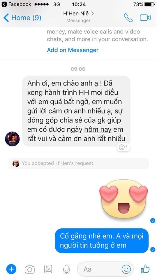 Sau khi mở lại trang cá nhân, việc làm đầu tiên của H’Hen Niê gây chú ý. Cụ thể, cô gửi lời cảm ơn NTK Thuận Việt - thành viên ban giám khảo Hoa hậu Hoàn vũ Việt Nam 2017 vì những đóng góp, lời khuyên trong cuộc thi.