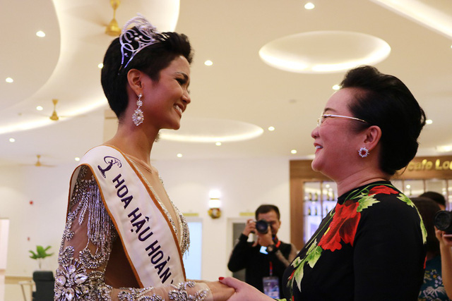 Tân Hoa hậu Hoàn vũ Việt Nam 2017 H’Hen Niê sinh năm 1992, đến từ Đắk Lắk. Cô là thí sinh người Ê-đê duy nhất tại cuộc thi. Không chỉ sở hữu gương mặt khả ái, sắc sảo, người đẹp còn có ngoại hình nổi bật với chiều cao 1,72 m, số đo 3 vòng 84-60 -91.