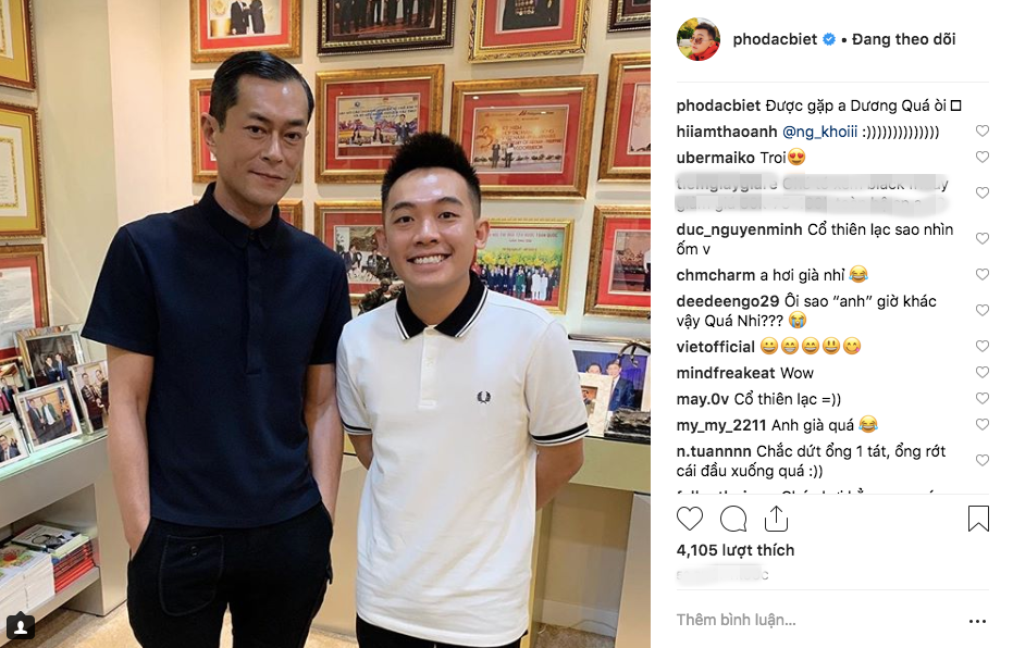 Mới đây, trên trang cá nhân Phở đặc biệt (Tô Bửu Phát) có đăng tải hình ảnh anh cùng diễn viên “Dương Quá” Cổ Thiên Lạc trong bộ phim Thần điêu đại hiệp đình đám một thời. Cụ thể, trên trang cá nhân của mình, Phở chia sẻ những tấm hình bên cạnh nam diễn viên cùng dòng caption bày tỏ sự vui mừng: “Được gặp anh Dương Quá rồi”. Có thể thấy nam diễn viên Cổ Thiên Lạc tuy đã xấp xỉ tuổi 50 nhưng vẫn giữ được phong thái “anh hùng” ngày nào.