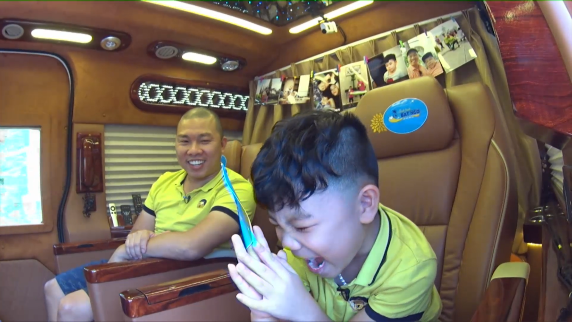 “Cậu bé kim cương” của showbiz Việt còn chứng tỏ “nhỏ mà có võ” khi mỗi lời nói thốt ra đều “chắc nịch”, như trước khi đi xem hổ dù thích hổ lắm luôn nhưng “phải có cổng chắn con mới xem cơ”; hay những thuật ngữ chuẩn “con nhà kinh doanh” như “một đơn vị” thay vì “một triệu đồng”. Dù vậy, không thiếu những khoảnh khắc cu cậu trở lại với vẻ hồn nhiên, đáng yêu và lễ phép, khi đối đáp cùng MC Thanh Tùng hay giao tiếp với mọi người xung quanh.
