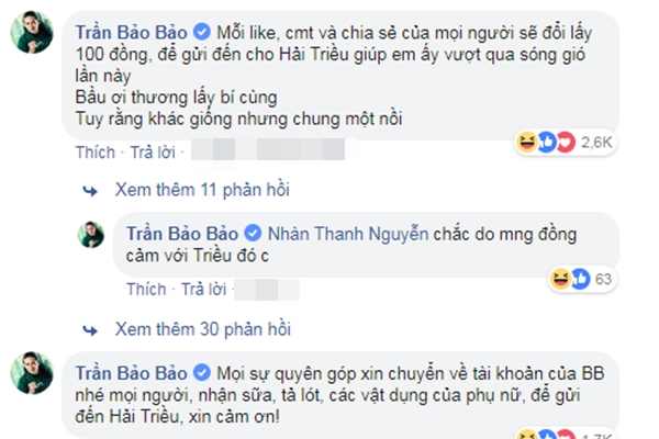 BB Trần kêu gọi quyên góp cho Hải Triều.