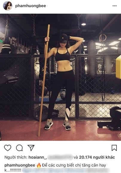 Kèm theo bài viết là một số khoảnh khắc kém lung linh, chứng minh thân hình không còn “mình hạc xương mai” của Phạm Hương.