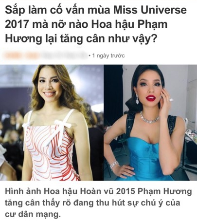 Vừa qua, một trang tin đã đăng tải bài viết chê bai vóc dáng của đương kim Hoa hậu Hoàn vũ Việt Nam, cho rằng người đẹp tăng cân không kiểm soát dù sắp làm cố vấn cho đấu trường nhan sắc tầm cỡ quốc gia.