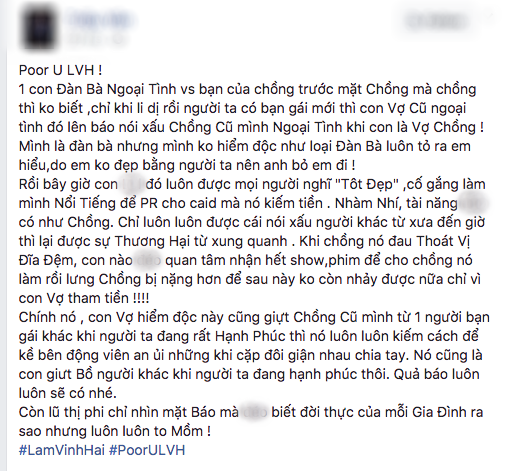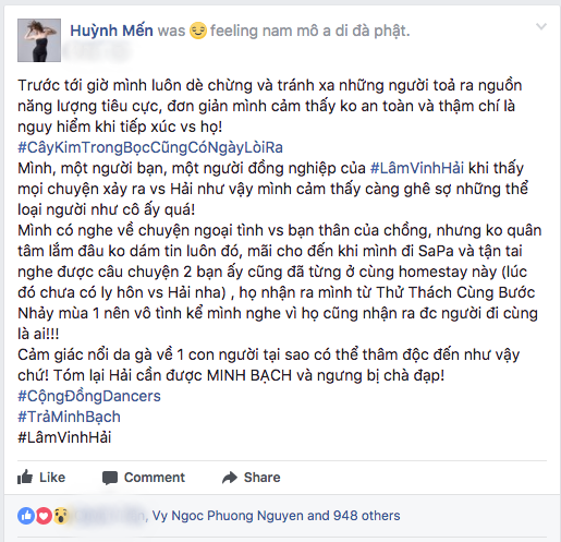 Những ngày qua, thông tin về mối quan hệ phức tạp giữa Lâm Vinh Hải - Linh Chi - Lý Phương Châu và một nhân vật mới là biên đạo múa Hiền Sến đang thu hút sự quan tâm của cộng đồng mạng. Nếu như trước đó, mọi người đứng về phía Lý Phương Châu và đồng loạt lên án Lâm Vinh Hải là kẻ “có trăng quên đèn” thì mọi chuyện bỗng chốc xoay 180 độ khi nữ dancer tên Triệu Vân bất ngờ lên tiếng tố cáo Lý Phương Châu ngoại tình.
