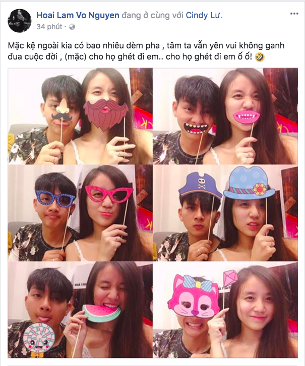 Trước đó, con nuôi của Hoài Linh cũng gửi lời nhắn nhủ đến bạn gái khi chuyện tình yêu không nhận được sự ủng hộ từ khán giả. Bỏ ngoài tai tất cả, Hoài Lâm chia sẻ hình ảnh nhắng nhít bên Bảo Ngọc cùng lời an ủi: “Mặc kệ ngoài kia có bao nhiêu dèm pha, tâm ta vẫn yên vui không ganh đua cuộc đời, (mặc) cho họ ghét đi em, cho họ ghét đi em!“.