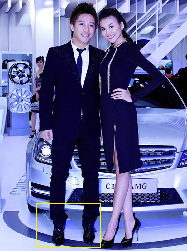 Bên cạnh “tuyệt chiêu” kiễng chân, giày đế cao cũng là trợ thủ đắc lực cho các mỹ nam V-biz, đặc biệt là Trấn Thành.