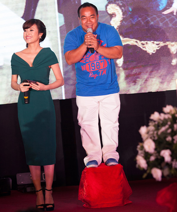 Đôi lúc để tránh việc “lép vế” khi đứng cạnh bà xã đang mang giày cao gót, nam MC cũng nhón chân chút ít.