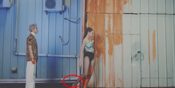 Ngay lập tức, các fan đã “truy lùng dấu vết” và tìm ra lời giải đáp. Trong phân đoạn quay mặt bước đi, chân dài người Nga đã phải thay giày cao gót bằng dép tông xanh để đỡ “dìm hàng” nam chính.